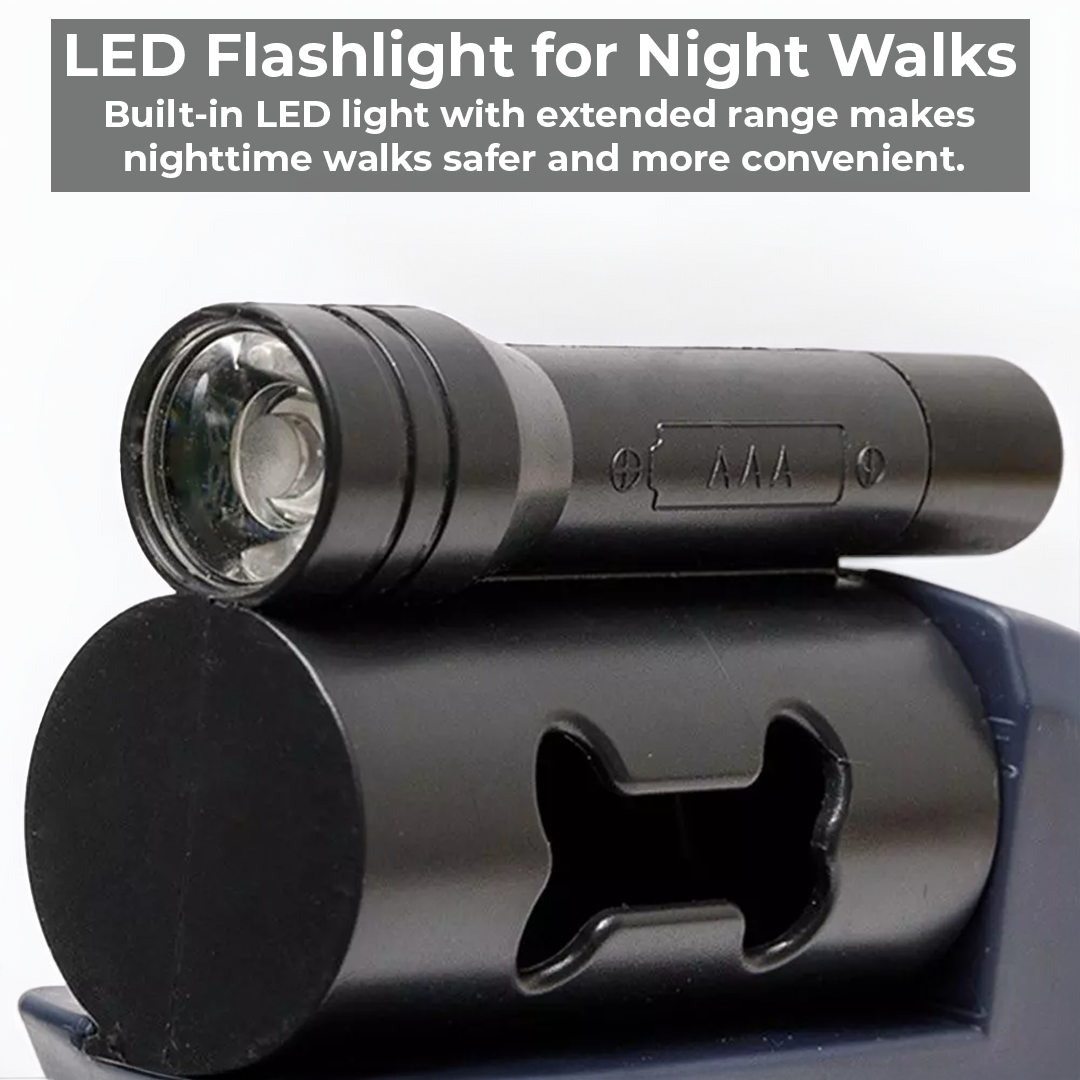 Our integrated waste bag holder ensures you're always prepared for quick clean-ups. Enjoy longer walks without the mess, keeping your environment and peace of mind intact.